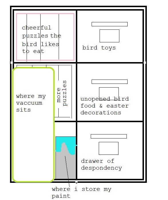 Around the time that China was building islands in the South China Sea, I was wandering lonely as a cloud through Home Depot. Overwhelmed by the variety and volume of home organization decor, I grabbed the closest item in a sheer panic and ran. When I got home I discovered it was a six-cubed Martha Stewart Living home organizer. Curiously, I’d also taken several collapsible fabric bins, which upon closer inspection fit perfectly in the compartments.